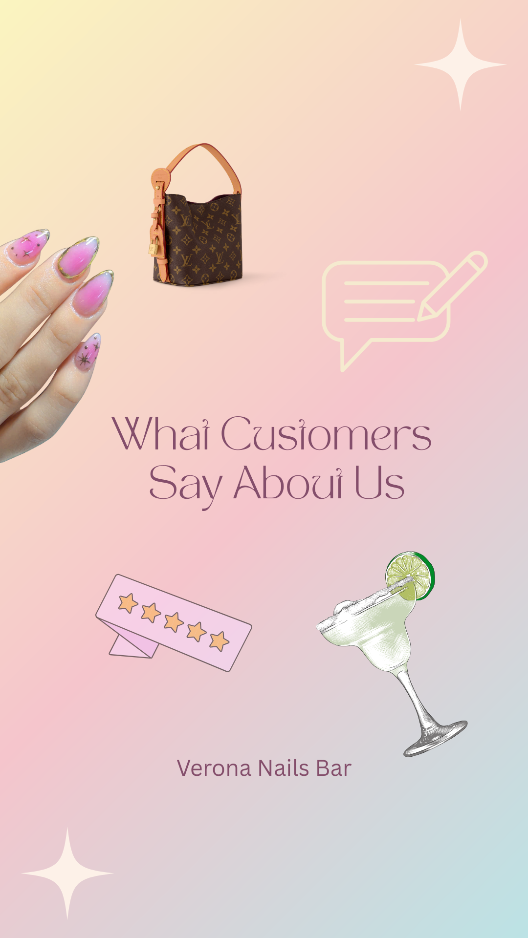 Welcome to Verona Nails Bar, your premier nail salon in San Antonio, Texas! Looking for a high-end nail salon near me? Discover Verona Nails Bar, a top-rated nail salon in San Antonio known for exceptional service, luxurious ambiance, and hundreds of 5-star reviews. We specialize in manicures, pedicures, and custom nail designs, using only premium products to ensure flawless results. Whether you're searching for stylish nails near me or a relaxing self-care experience, our friendly, professional team is here to pamper you. Enjoy complimentary drinks and a pristine, welcoming atmosphere every time you visit. Treat yourself today at Verona Nails Bar—where beauty meets excellence.